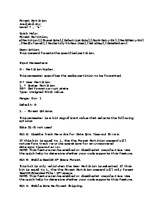 m0,2,2,,,,,22 ( Format user area partition without certifying defects and relocate defects. not effect Data in a drive )