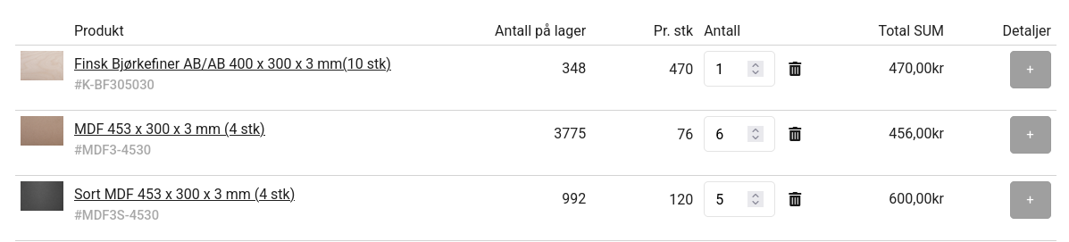 • MDF: 3mm, 4mm er de vanligste. Har også 6mm